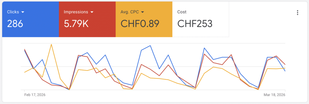 Les campagnes Meta Ads génèrent 1 lead pour CHF 12 investis, avec un taux de conversion en client de 100 % au moment de la rédaction de cette étude de cas